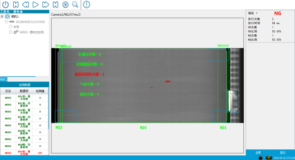 在線式檢測系統(tǒng)一共四個工位,前端物料正反面(工位1和工位2)檢測兩個,后端兩個超聲波焊接后各一個(工位3和工位4)。