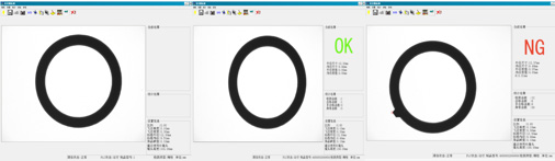 “密封圈缺陷視覺檢測系統”針對密封圈質量(邊緣缺口毛刺、內完井尺寸)進行檢測。相機快速采集生產線上密封圈圖像,將圖像數據傳送到圖像處理系統,圖像處理系統對每幅圖像進行預處理、尺寸測量等運算,通過與標準模板圖像及設定參數進行比較,來判斷產品是否合格,輸出廢品報警信息及剔廢控制信號,由機械系統剔除廢品,從而保證密封圈質量。 本系統主要應用于各類規格密封圈生產過程中的缺陷檢測,并可延伸至相關產品或行業的應用中。