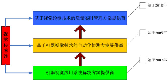 2.背景 在現(xiàn)代工業(yè)自動化生產(chǎn)中,涉及到各種各樣的檢驗、生產(chǎn)監(jiān)視及零件識別應(yīng)用,例如零配件批量加工的尺寸檢查,自動裝配的完整性檢查,電子裝配線的元件自動定位,IC上的字符識別等。通常人眼無法連續(xù)、穩(wěn)定地完成這些帶有高度重復(fù)性和智能性的工作,其它物理量傳感器也難有用武之地。由此人們開始考慮利用光電成像系統(tǒng)采集被控目標(biāo)的圖像,而后經(jīng)計算機(jī)或?qū)S玫膱D像處理模塊進(jìn)行數(shù)字化處理,根據(jù)圖像的像素分布、亮度和顏色等信息,來進(jìn)行尺寸、形狀、顏色等的判別。這樣,就把計算機(jī)的快速性、可重復(fù)性,與人眼視覺的高度智能化和抽象能力相結(jié)合,由此產(chǎn)生了機(jī)器視覺的概念。 3.特點 精度高 作為一個精確的測量儀器,設(shè)計優(yōu)秀的視覺系統(tǒng)能夠能夠達(dá)到正常人工測量所無法比擬的程度。 非接觸 測量不需要接觸,所以對脆弱部件沒有磨損和危險。 連續(xù)性 視覺系統(tǒng)可以使人們免受疲勞之苦。因為沒有人工操作者,也就沒有了人為造成的操作變化。多個系統(tǒng)可以設(shè)定單獨(dú)運(yùn)行。 成本低效率高 機(jī)器視覺系統(tǒng)成本相對于人工來說可以說非常低。視覺系統(tǒng)的操作和維持費(fèi)用非常低。 靈活性 視覺系統(tǒng)能夠進(jìn)行各種不同的測量。當(dāng)應(yīng)用變化以后,只需軟件做相應(yīng)變化或者升級以適應(yīng)新的需求即可。機(jī)器視覺系統(tǒng)比光學(xué)或機(jī)器傳感器有更好的可適應(yīng)性。它們使自動機(jī)器具有了多樣性、靈活性和可重組性。當(dāng)需要改變生產(chǎn)過程時,對機(jī)器視覺來說“工具更換”僅僅是軟件的變換而不是更換昂貴的硬件。當(dāng)生產(chǎn)線重組后,視覺系統(tǒng)往往可以重復(fù)使用。