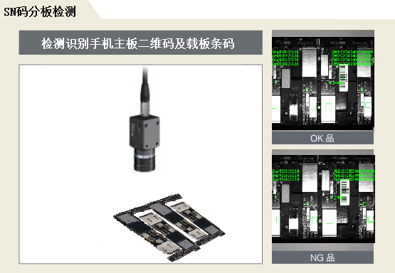 主要功能:檢測(cè)識(shí)別手機(jī)主板上的二維碼信息及載板上的條碼,檢測(cè)結(jié)果以字符串形式發(fā)送給服務(wù)器,上位機(jī)進(jìn)行分板處理。